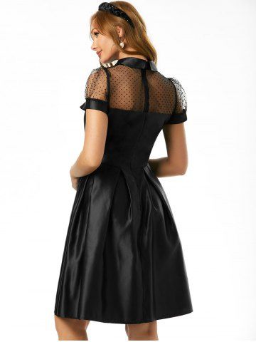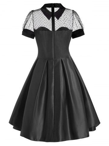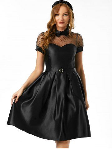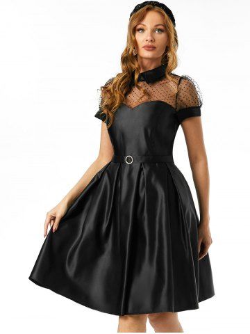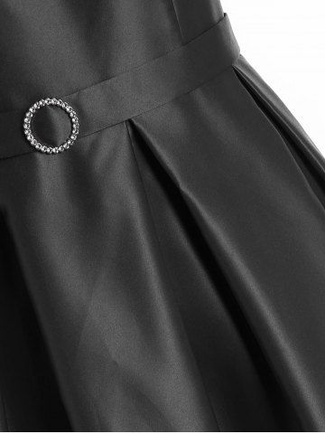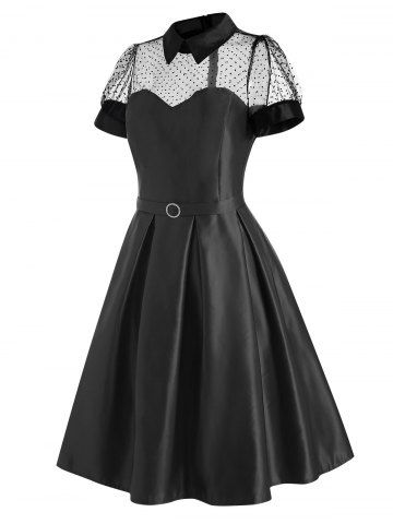 Robe de Bal Ceinturée Panneau en Maille - Noir - Noir