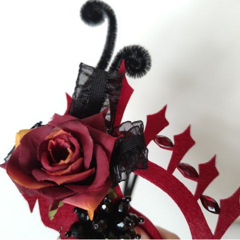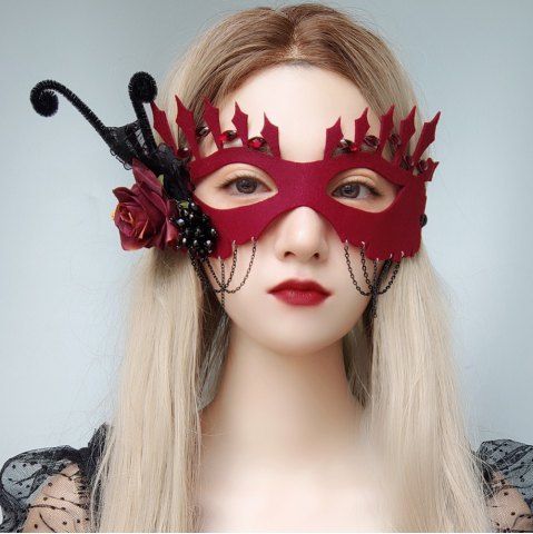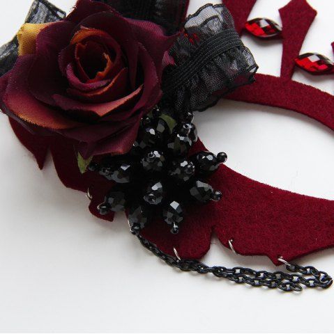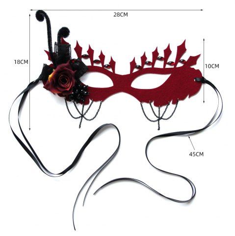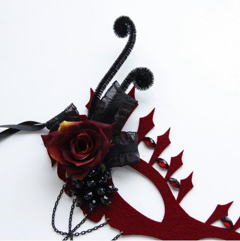 Masque de Cosplay Halloween Rose Semi-Visage - Rouge Foncé