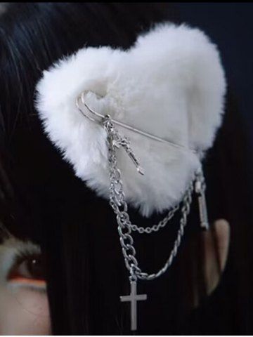 Pince à Cheveux en Forme de Cœur en Peluche - Blanc - Blanc