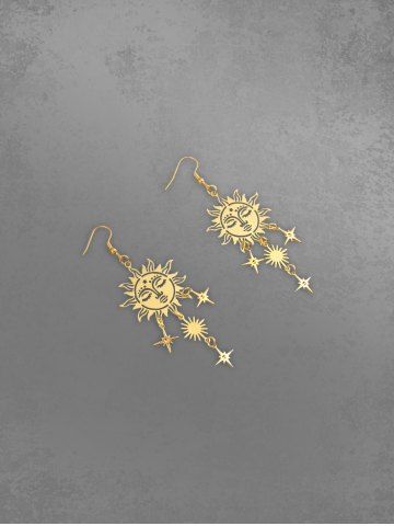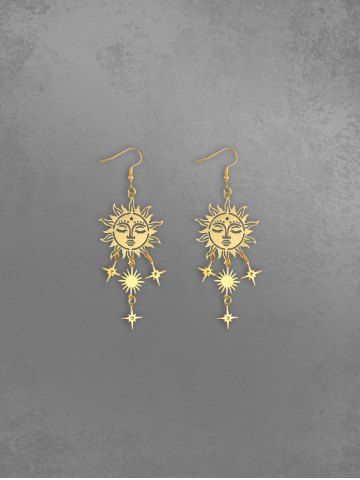 Boucles D'Oreilles Pendantes en Forme D'Etoile de Soleil - D'or - Or