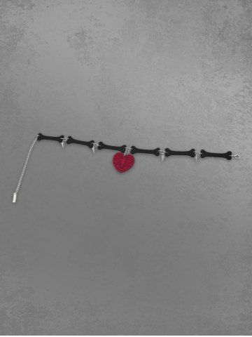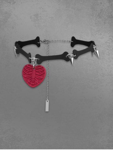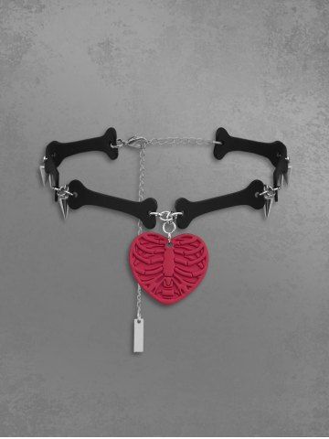 Accessoires Gothiques> Collier en Chaîne avec Pendentif en Forme de Squelette Cœur Orné de Rivets