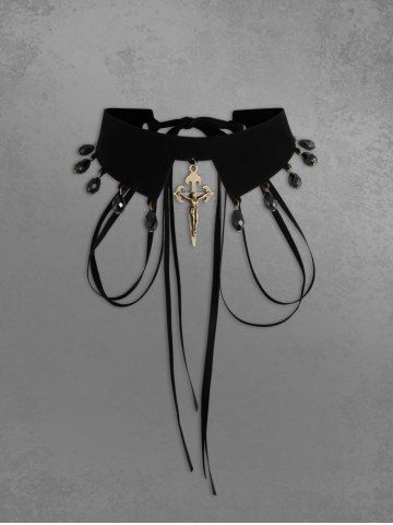 Accessoires Gothiques > Collier Ras-de-Cou avec Pendentif Croix et Pompon