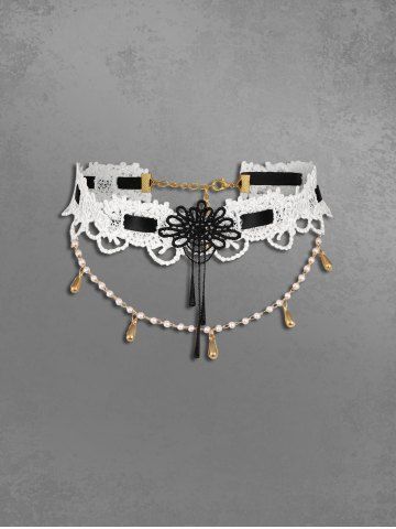 Accessoires Gothiques > Collier Ras-du-cou en Dentelle Florale Perlée