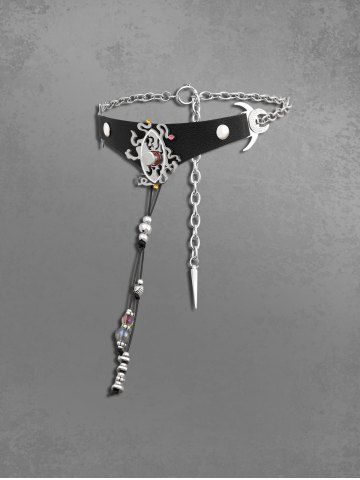 Accessoires Gothiques > Collier Ras-du-Cou Lune Œil en Cuir PU