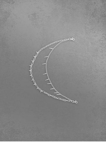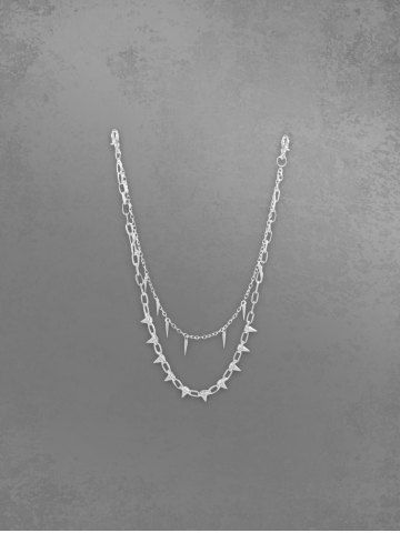 Pendentif Double Chaînes Orné de Rivets - Argent - Argent