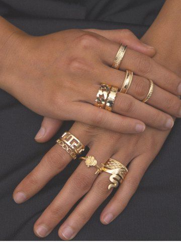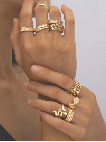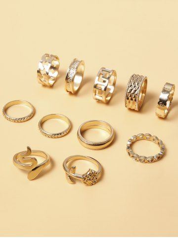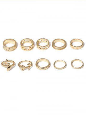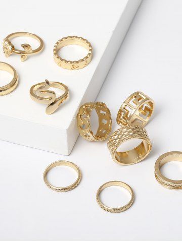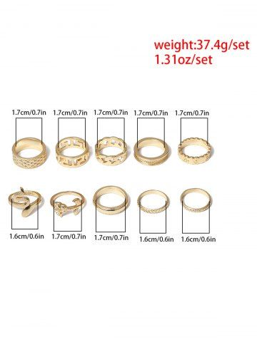 10 Pièces Bagues en Forme de Serpent Amusant - D'or - Or