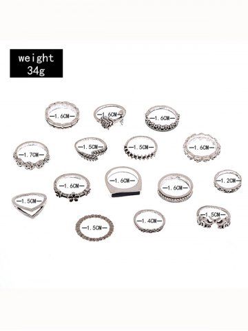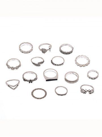 14 Pièces Ensemble de Bagues Motif Roses Feuilles et Fleurs Style Vintage - Argent - Argent