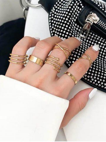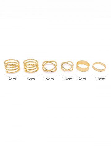 6 Pièces Bague Ouverte Géométrique Ronde Croisée Figure Jointive - D'or - Or