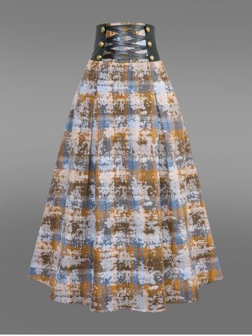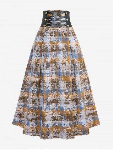 Jupe Gothique Linge A à Carreaux Panneau en PU à Lacets avec Rivet - Café - Café