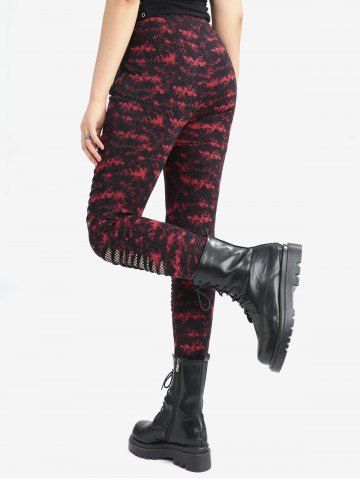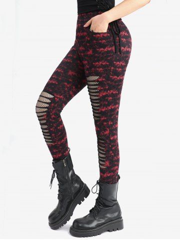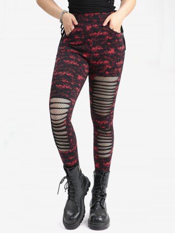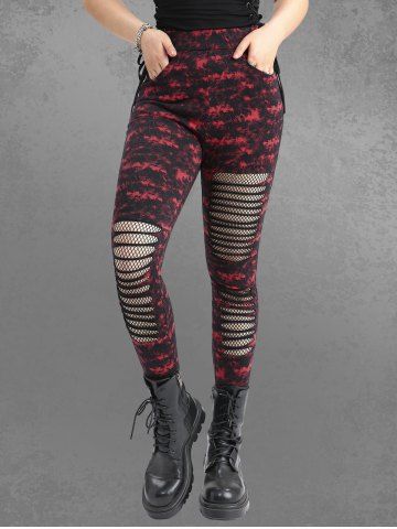 Bas Alternatifs et Gothiques > Legging Moulant Déchiré Teinté Imprimé Panneau en Maille avec Poche