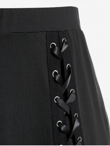v*****r5Plus Size Skulls Mesh Panel Bell Sleeves Twist Lace Up Asymmetrical 2 In 1 TopColor: BLACK Size: 2X | US 18-20I love the design and colors to the blouse. I was not expecting the skulls which fits my witchy personality. 🖤♥️🖤♥️🖤🖤☺️