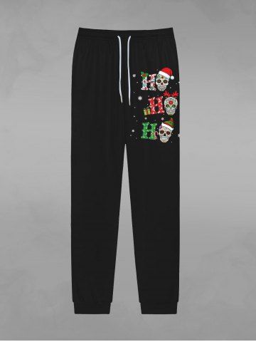 Chapeau de Survêtement avec Cordon de Serrage à Imprimé Élans Flocons de Neige et Crânes pour Hommes Style Gothique - Noir - Noir