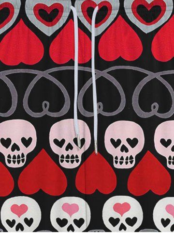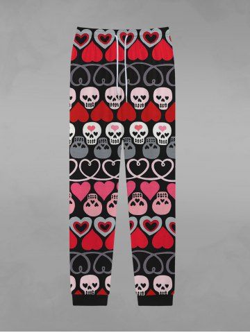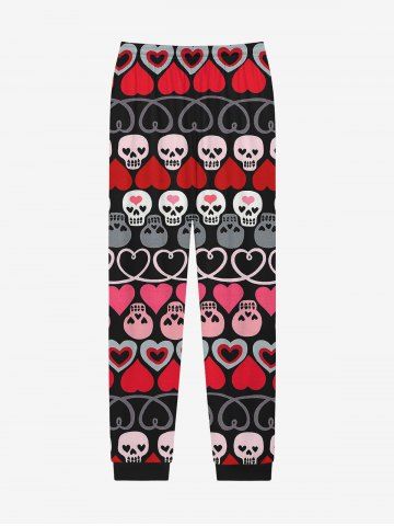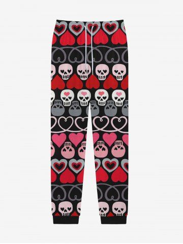 Pantalon de Survêtement avec Cordon de Serrage à Imprimé Cœurs et Rayures pour la Saint-Valentin - Noir - Noir