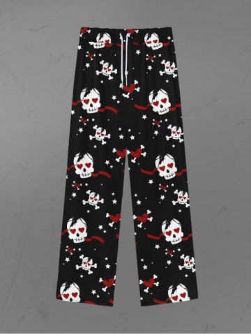 Pantalon de Survêtement avec Cordon de Serrage à Imprimé Squelette et Cœur pour Homme - Noir - Noir