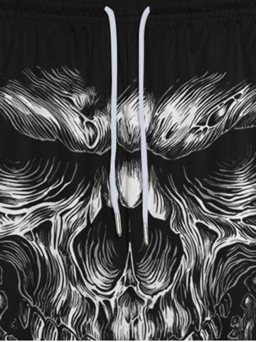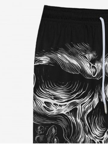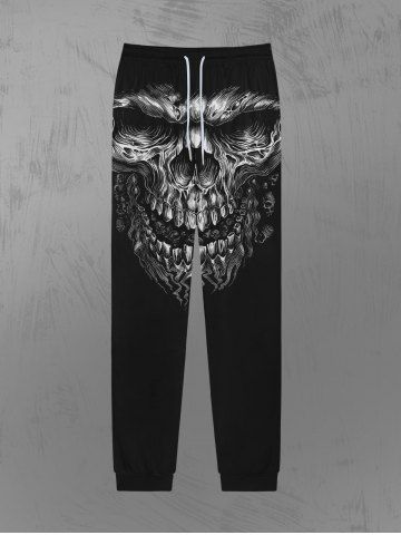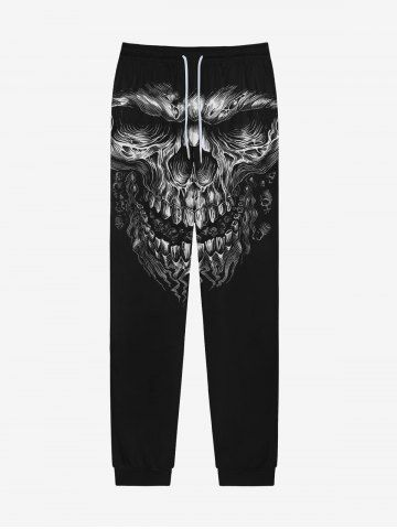 Pantalon de Survêtement D'Halloween Gothique 3D Crâne Imprimé avec Poches à Cordon - Noir - Noir