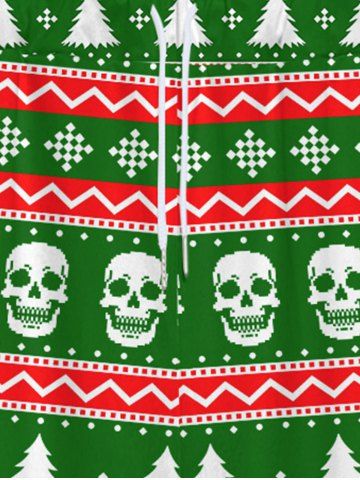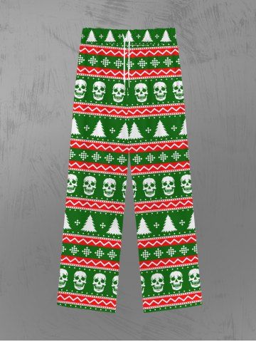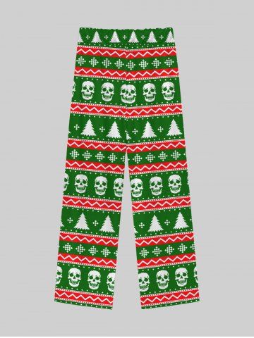Pantalon de Survêtement de Noël Gothique Rayé Crâne Sapin de Noël et Flocon de Neige Imprimés à Jambe Large - Vert - Vert