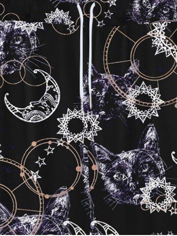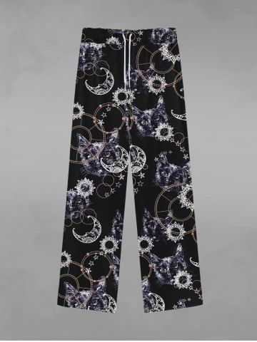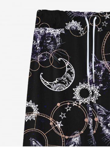 Pantalon de Survêtement Jogging Gothique Chat Lune et Ciel Etoilé Imprimés à Cordon - Noir - Noir