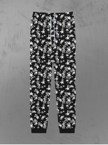 Pantalon Jogging avec Cordon de Serrage à Imprimé Etoiles Style Gothique pour Hommes - Noir - Noir
