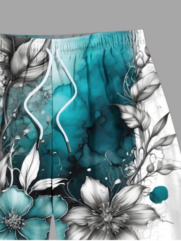 Bas> Short de Plage à Imprimé Feuilles et Fleurs à L'Aquarelle Grande-Taille pour Hommes