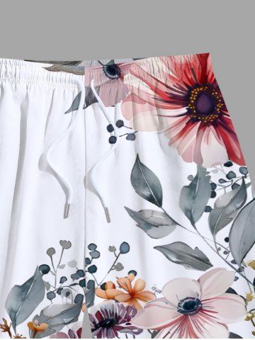 Short de Plage de Grande Taille Imprimé de Feuilles de Fleurs - Blanc - Blanc