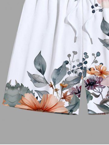 Bas> Short de Plage de Grande Taille Imprimé de Feuilles de Fleurs