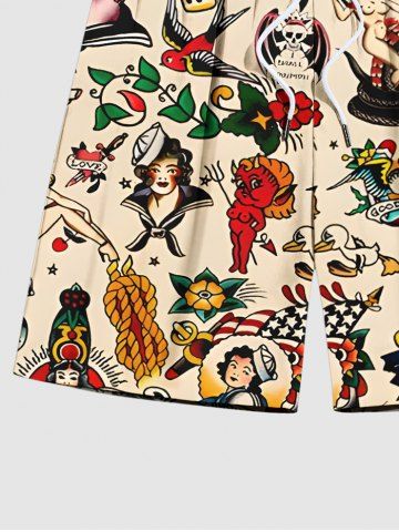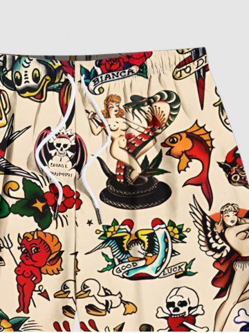 Bas> Short de Plage Feuille de Serpent et Fleur Imprimés Grande Taille