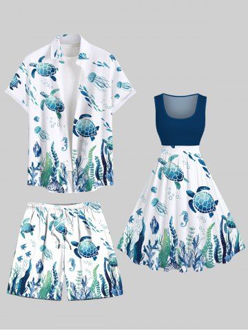 Bas> Short de plage grande taille à cordon de serrage pour homme, imprimé méduses, algues, hippocampe, tortue, poisson, créatures marines hawaïennes