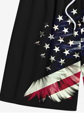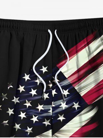 Short de plage grande taille à imprimé drapeau américain patriotique pour homme - Noir - Noir