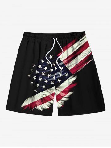 Short de plage grande taille à imprimé drapeau américain patriotique pour homme - Noir - Noir