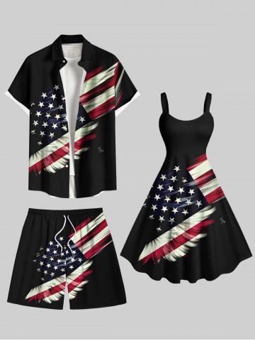 Short de plage grande taille à imprimé drapeau américain patriotique pour homme - Noir - Noir