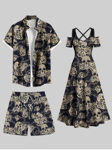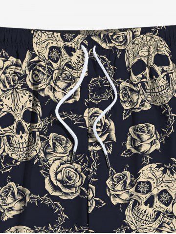 Short de plage grande taille à imprimé tête de mort et roses pour homme - Noir - Noir