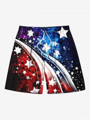 Short de plage grande taille à imprimé tie-dye et drapeau américain patriotique pour homme - Noir - Noir