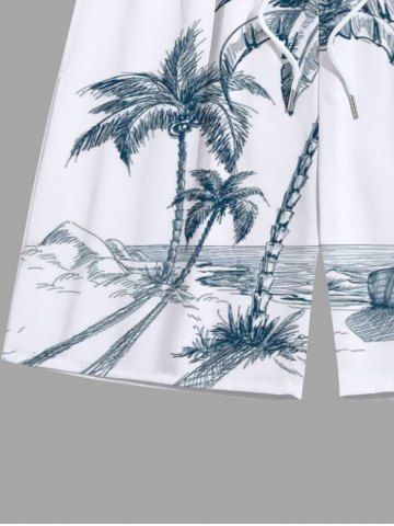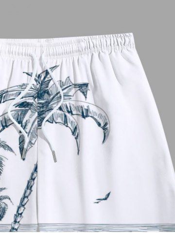Short de Plage Hawaïen à Imprimé Cocotiers et Paysage Marin Grande-Taille pour Hommes - Blanc - Blanc