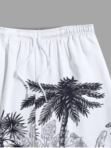 Short de Plage Hawaïen Feuille Arbre Noix de Coco Imprimé de Grande Taille pour Homme - Blanc - Blanc