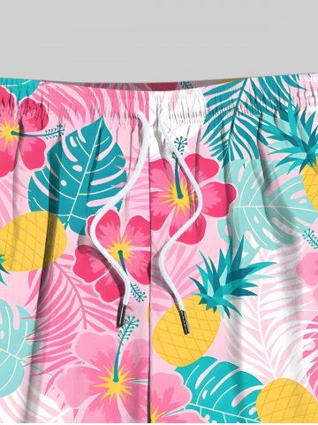 Short de Plage Hawaïen Feuille Tropicale Fleur Imprimées de Grande Taille pour Homme - Rose Clair - Rose Léger