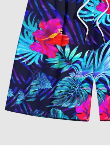 Bas> Short de Plage Hawaïen Fleur Feuille Tropicale Imprimées de Grande Taille pour Homme