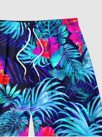 Short de Plage Hawaïen Fleur Feuille Tropicale Imprimées de Grande Taille pour Homme - Bleu - Bleu