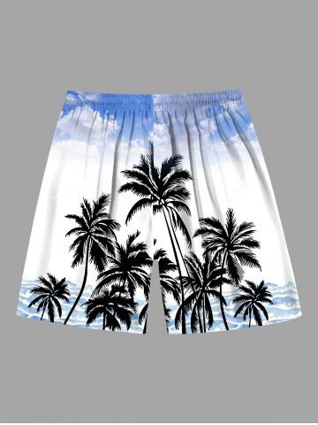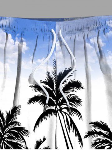 Short de plage hawaïen grande taille à cordon de serrage et imprimé cocotiers ombré ciel pour homme - Bleu - Bleu