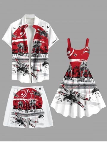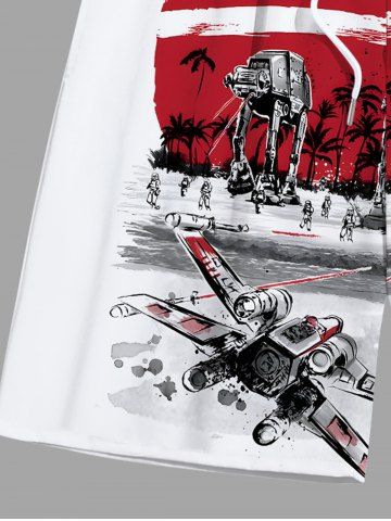 Short de plage hawaïen grande taille à imprimé cocotier et Sun Fighter pour homme - Blanc - Blanc
