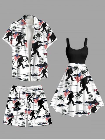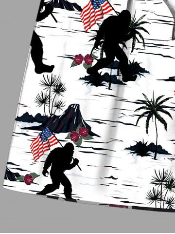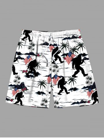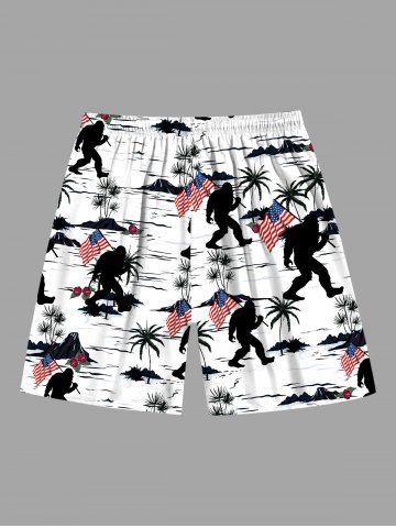 Short de plage hawaïen grande taille à imprimé patriotique drapeau américain, cocotiers et gorilles pour homme - Blanc - Blanc