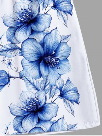 Short de plage hawaïen grande taille à imprimé tropical et fleurs d'hibiscus pour homme - Blanc - Blanc