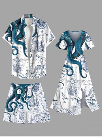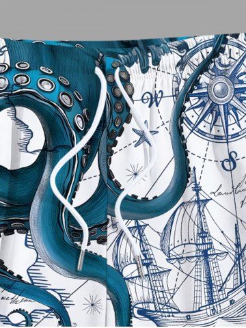 Bas> Short de plage hawaïen grande taille pour homme, imprimé sirène, gouvernail de bateau, pieuvre, croisière