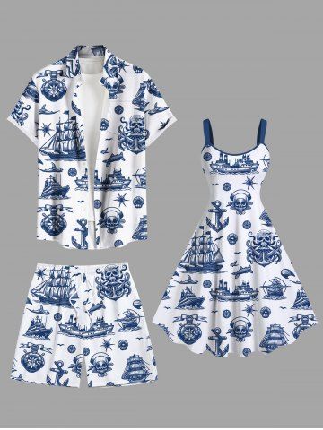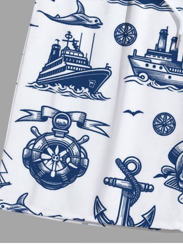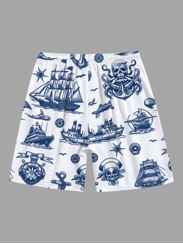 Short de plage hawaïen grande taille pour homme, imprimé tête de mort, pirate, pieuvre, ancre, croisière - Blanc - Blanc