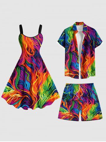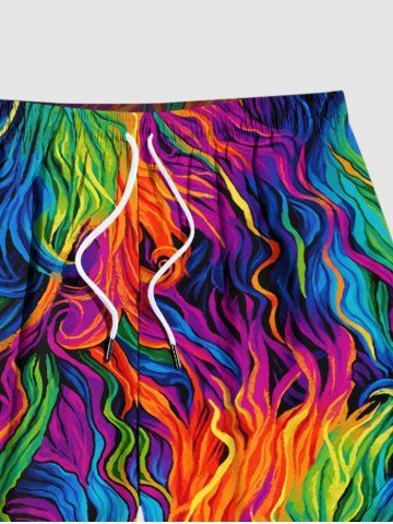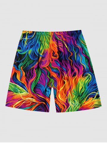 Bas > Short de Plage Hawaïen Peinture à L'Huile Colorée et Arc-en-ciel de Grande Taille pour Homme