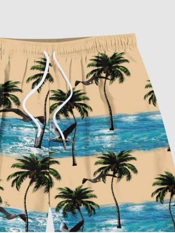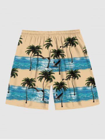Short de Plage Hawaïen Vague Arbre Noix de Coco Océan Imprimés de Grande Taille pour Homme - Café Lumière - 4xl