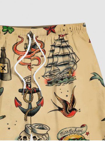 Short de Plage Hawaii Imprimé Hamburger Crâne et Coeur Grande Taille pour Homme - Café Lumière - 7xl
