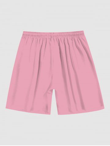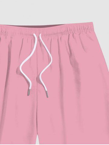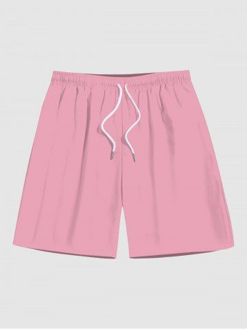 Short de Plage Hawaiien en Couleur Solide avec Poches Grande Taille pour Homme - Rose Clair - Rose Léger