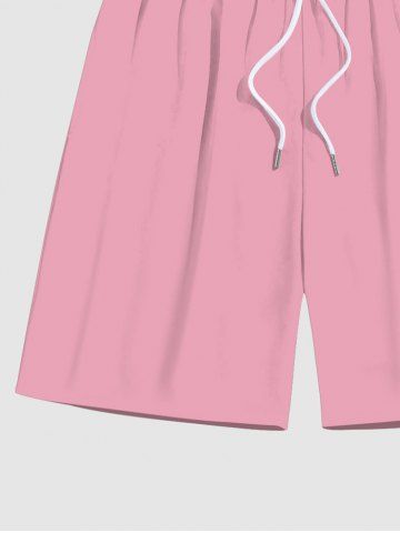 Short de Plage Hawaiien en Couleur Solide avec Poches Grande Taille pour Homme - Rose Clair - Rose Léger