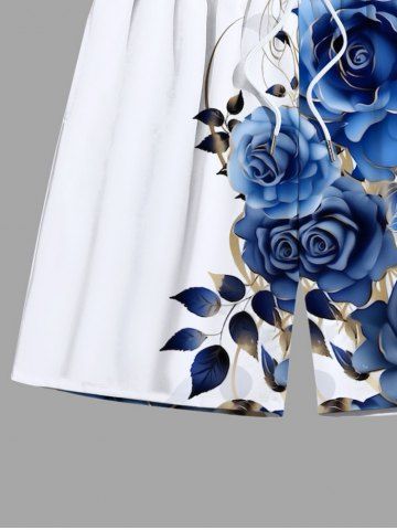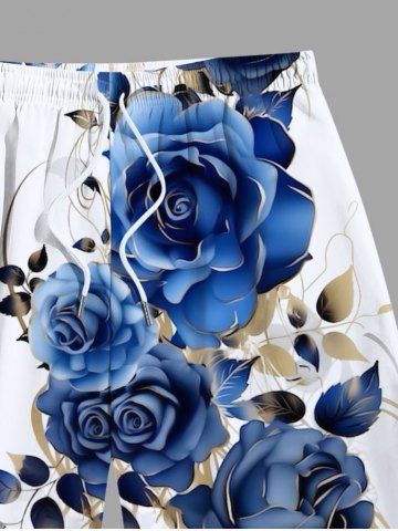 Short de Plage Imprimé Feuilles et Fleurs Grande Taille pour Homme - Bleu - Bleu