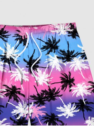 Shorts de plage hawaïens à imprimé colorblock cocotier grande taille pour hommes - Pourpre - Pourpre